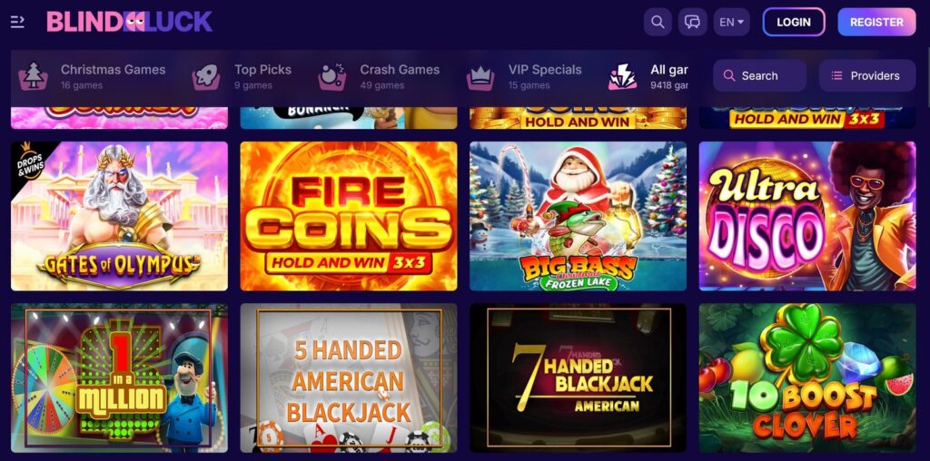 Blind Luck Casino wurde 2025 gestartet und bietet eine umfassende Plattform für Casino- und Sportwettenliebhaber. Mit über 2.500 Spielen, einem Live-Casino, spannenden Boni und ultraschnellen Auszahlungen – insbesondere mit Kryptowährungen – überzeugt die Seite durch eine moderne, sichere und benutzerfreundliche Oberfläche. Ideal für Spieler, die Vielfalt, Schnelligkeit und Zuverlässigkeit suchen.