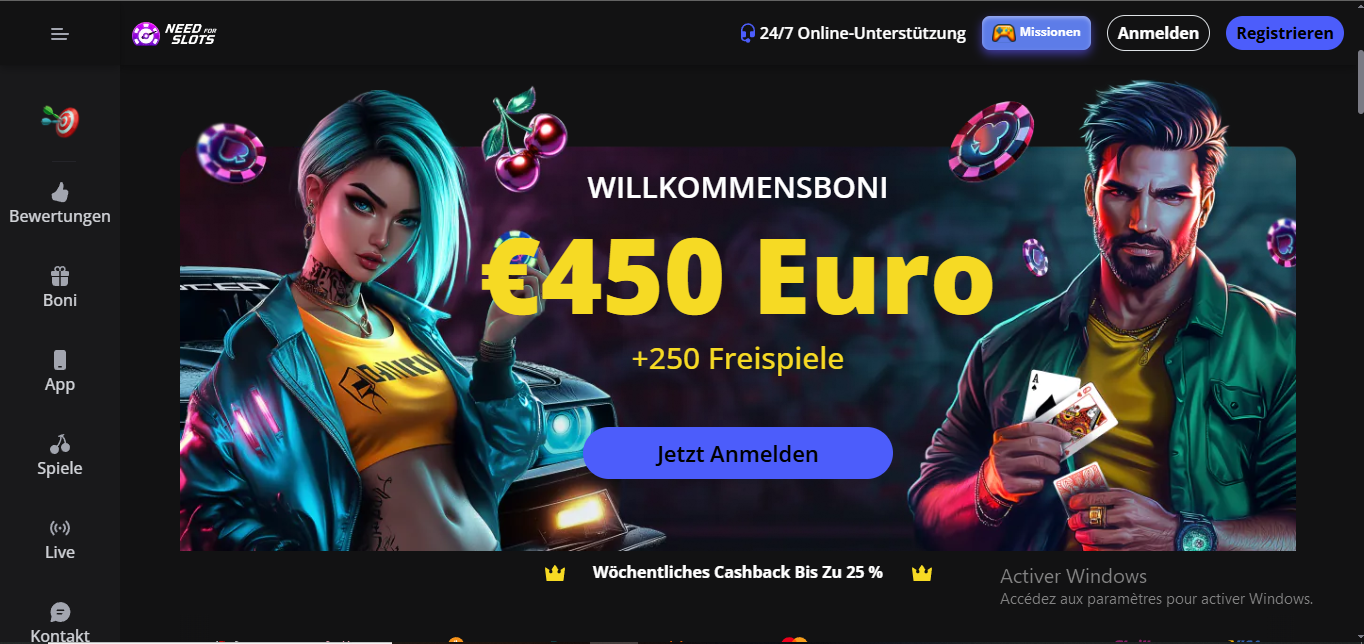 Needforslots Casino bietet ein vollständiges, modernes Online-Spielerlebnis, ideal für 2025 und darüber hinaus. Die umfangreiche Spielbibliothek, das immersive Live-Casino, gut strukturierte Boni und die flüssige mobile Erfahrung machen es zu einer seriösen und unterhaltsamen Plattform.