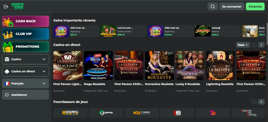 Super Spin bietet einen attraktiven Willkommensbonus und ein VIP-Programm, das regelmäßiges Spielen belohnt.