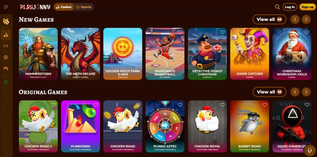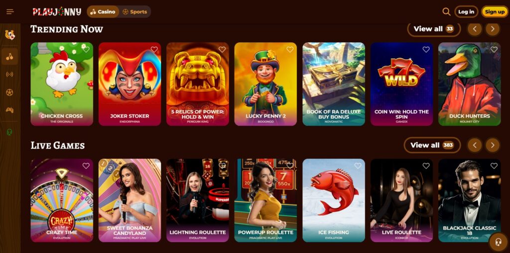 With more than 6,000 titles, Playjonny Casino ranks among the most content-rich platforms on the European market. Players can move seamlessly between classic slots, high-volatility modern releases and progressive jackpots without changing platforms.